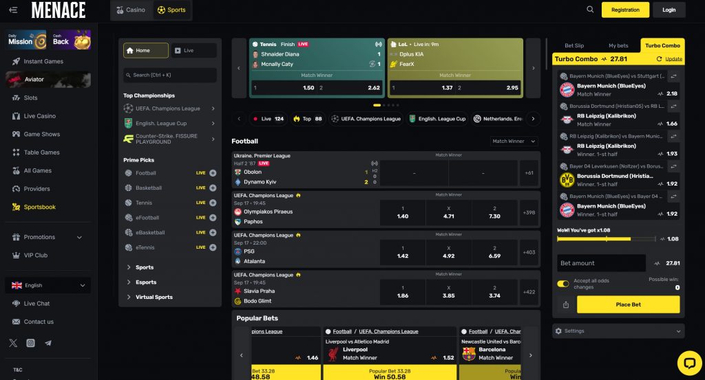Sports betting at Menace Casino isn’t an afterthought – it’s a real powerhouse. The integrated sportsbook covers a solid range of sporting events. Mainstream favorites to niche competitions that serious bettors love.