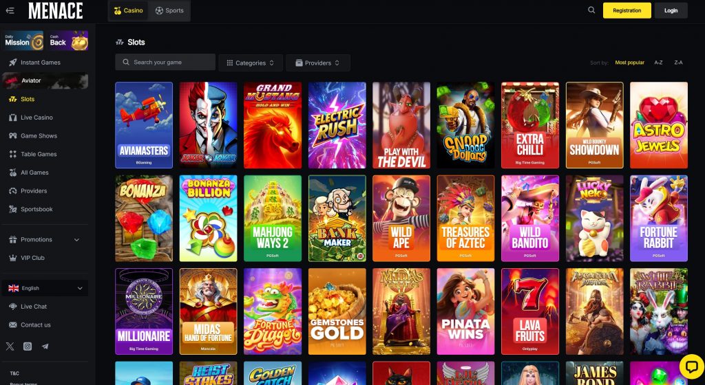 Menace Casino targets both crypto newcomers and experienced high-stakes players. The dark, sophisticated design creates a premium feel while keeping navigation simple. Finding games doesn’t turn into a treasure hunt.