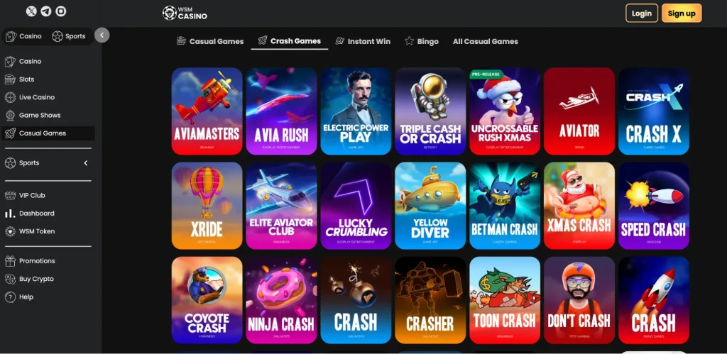 Every big category has enough depth to keep you busy. Slots are the heavy-weighters here, followed by crash and live dealer games. Folks with a WSM casino no deposit bonus or a small test deposit often wonder where to start. The breakdown below gives you a rough idea of how the 5,000+ games are spread out: